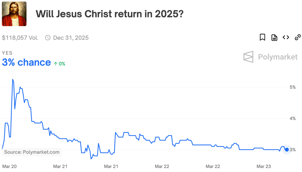Polymarket asks: will Jesus Christ return in 2025?