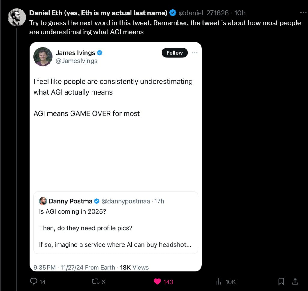 Yet as Seb Krier notes, some people act as if there’s some sort of internal censorship tool in their brains that makes them unable to consider what AGI would actually mean, or alternatively they are careful never to speak of it.