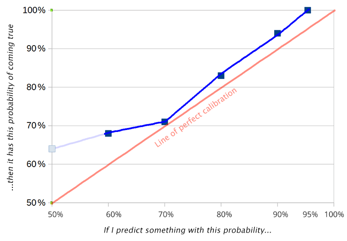 Perhaps the y-axis should be be in logits too; but I wasn't willing to figure out how to twiddle the error bars and deal with buckets where all/none of the predictions came true.)