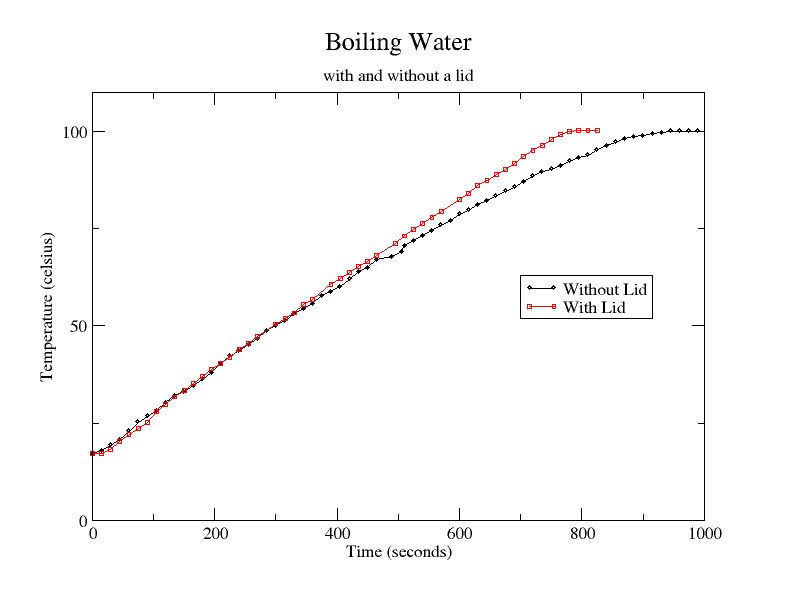 Note also that there are several free parameters in this example. E.g., I just moved to Germany, and now have wimpy German burners on my stove. If I put on a large container with 6L or more of water, and I do not cover it, the water will never go beyond bubble formation into a light simmer, let alone a rolling boil. If I cover the container at this steady state, it reaches a rolling boil in about another 90s.