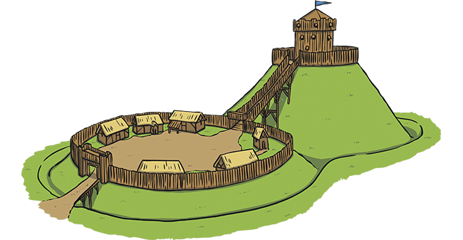 This strat is named for a type of medieval settlement consisting of a small but defensible fortress connected to a much larger, open air village. During raids, everyone retreats from the village because while they live there most of the time, it’s indefensible. They hole up inside the fortress on a hill, surrounded by a moat, only until the raiders leave: