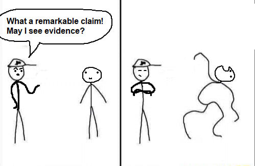 Now we come to evidence. Namely, what to do when you haven’t got any. Perhaps your religion has a central text, that counts as evidence to you. But other religions have their own books. Still, you feel “If that’s good enough for me, it should be good enough for him” and “that’s what I got, so it needs to be enough, and if it isn’t, that’s his fault”.