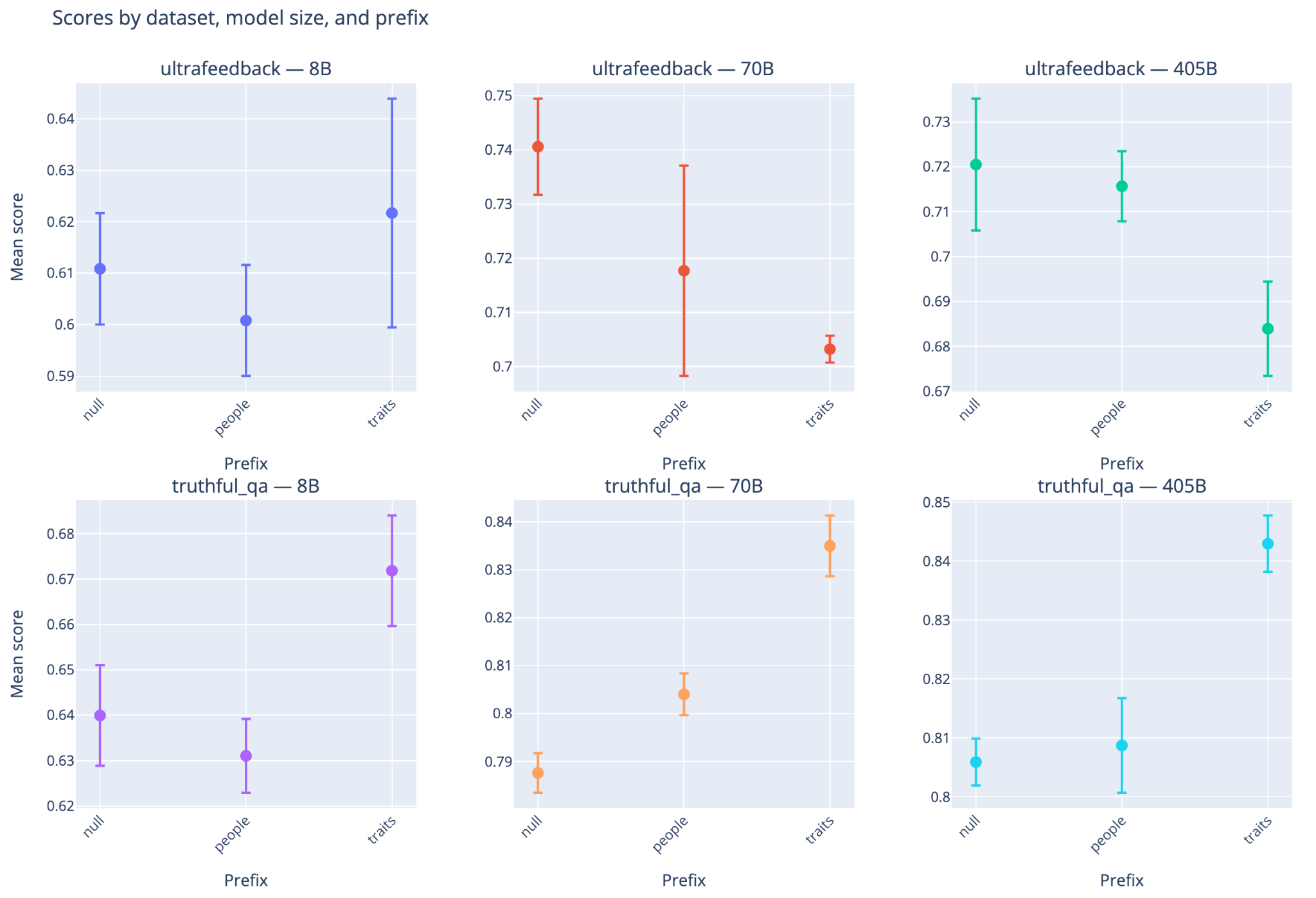 On the validation set, it turns out that for TruthfulQA the best prefixes we learned for the character description traits did provide a significant uplift on the score: