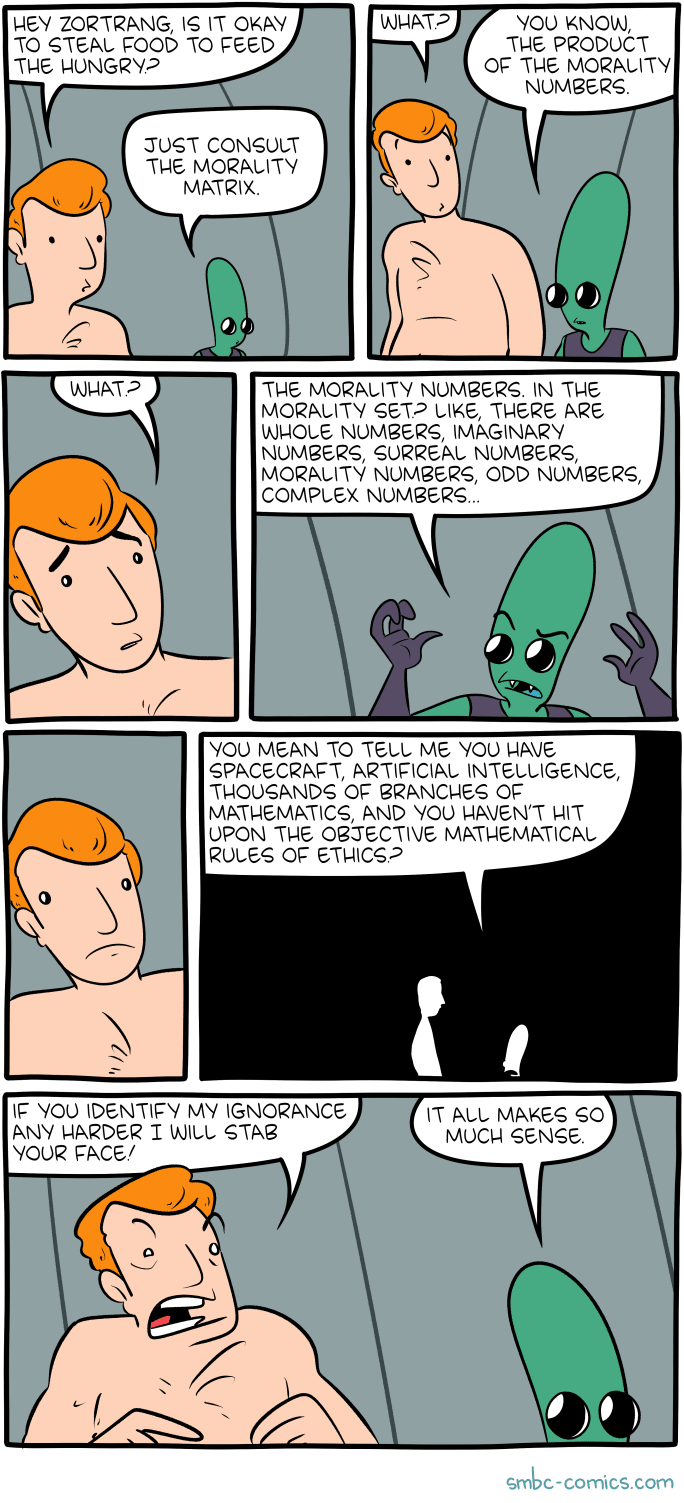An important branch of philosophy which hasn't been discussed so far is moral philosophy. The previously outlined ideas generalize to it in a mostly straightforward manner, though with a specific “pre-processing” twist.
