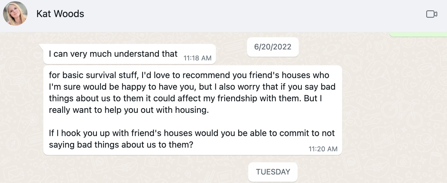 A few months later, some more texts from Kat Woods.