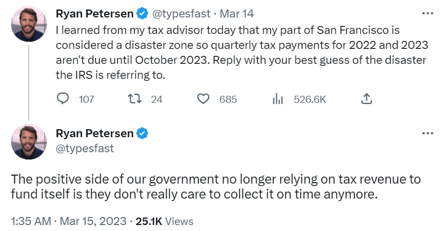 On the other hand, if you don’t have to pay, the marginal tax rate is kind of 0%? I mean, when has San Francisco not been a disaster area?