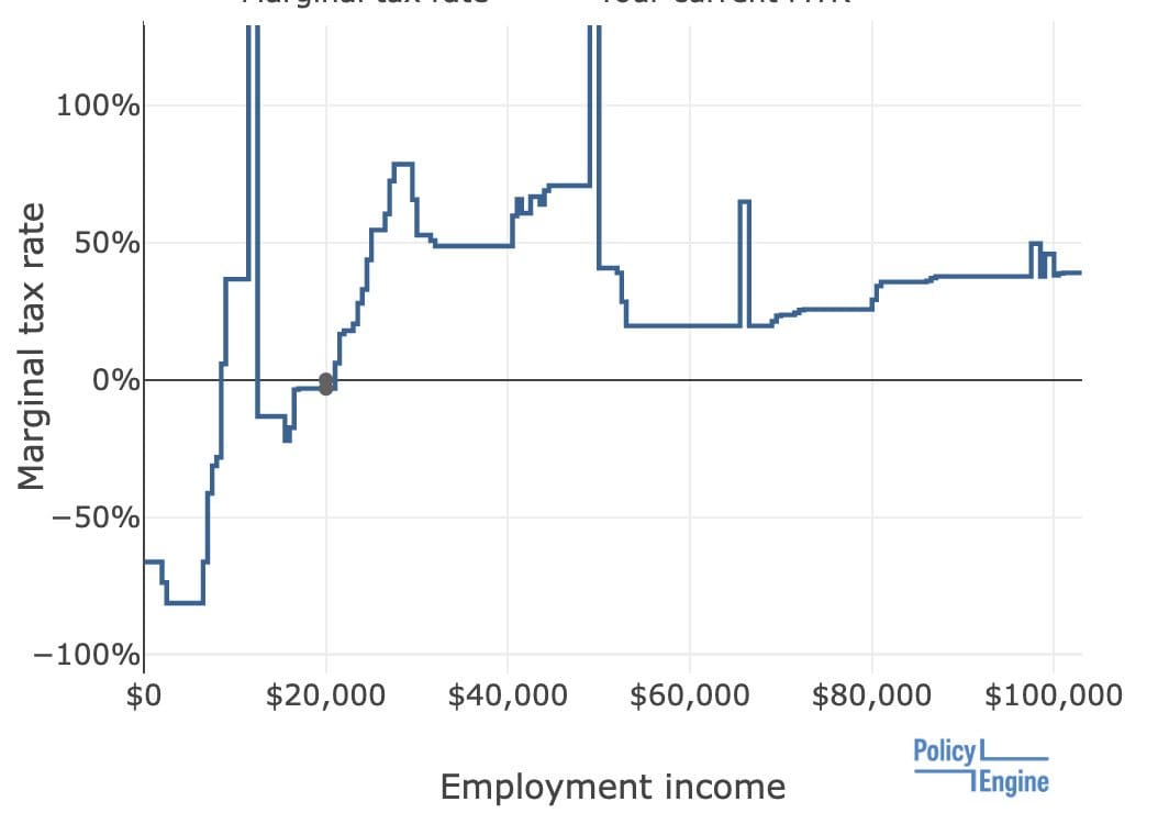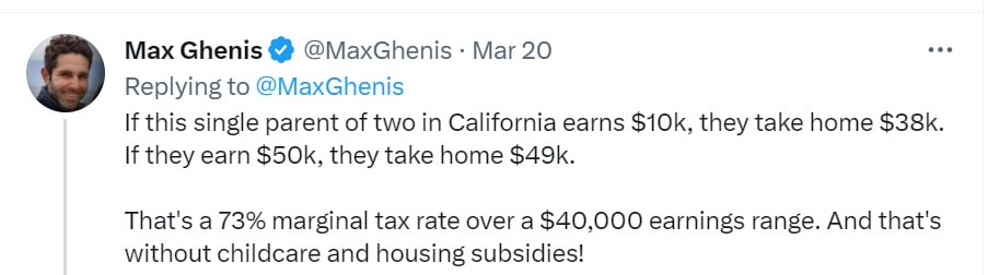 Max Ghenis presents: The California Marginal Tax Rate Schedule (his source), without the childcare and housing subsidies.