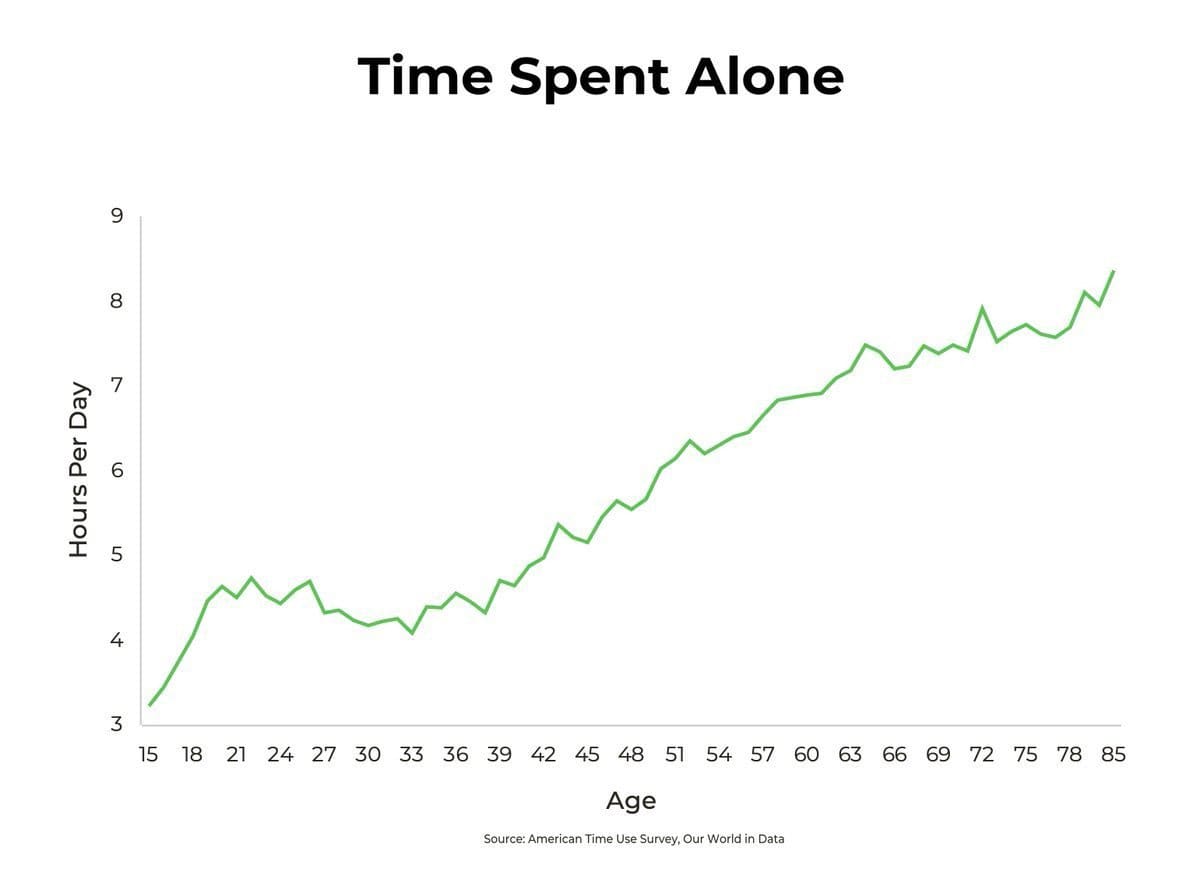 Do we have a loneliness epidemic? In the sense that we have always had a lot of loneliness, definitely yes. In the sense of something new going wrong on net, it is unclear. We spend more time alone. We also prefer more alone time as we get richer and older. Our technology means that when we are physically alone, we are less alone than we used to be. Then again, people could easily be super wrong about whether they should be investing in more time with people, it sure seems like many wealthy people mess this up. So how best to think about this?