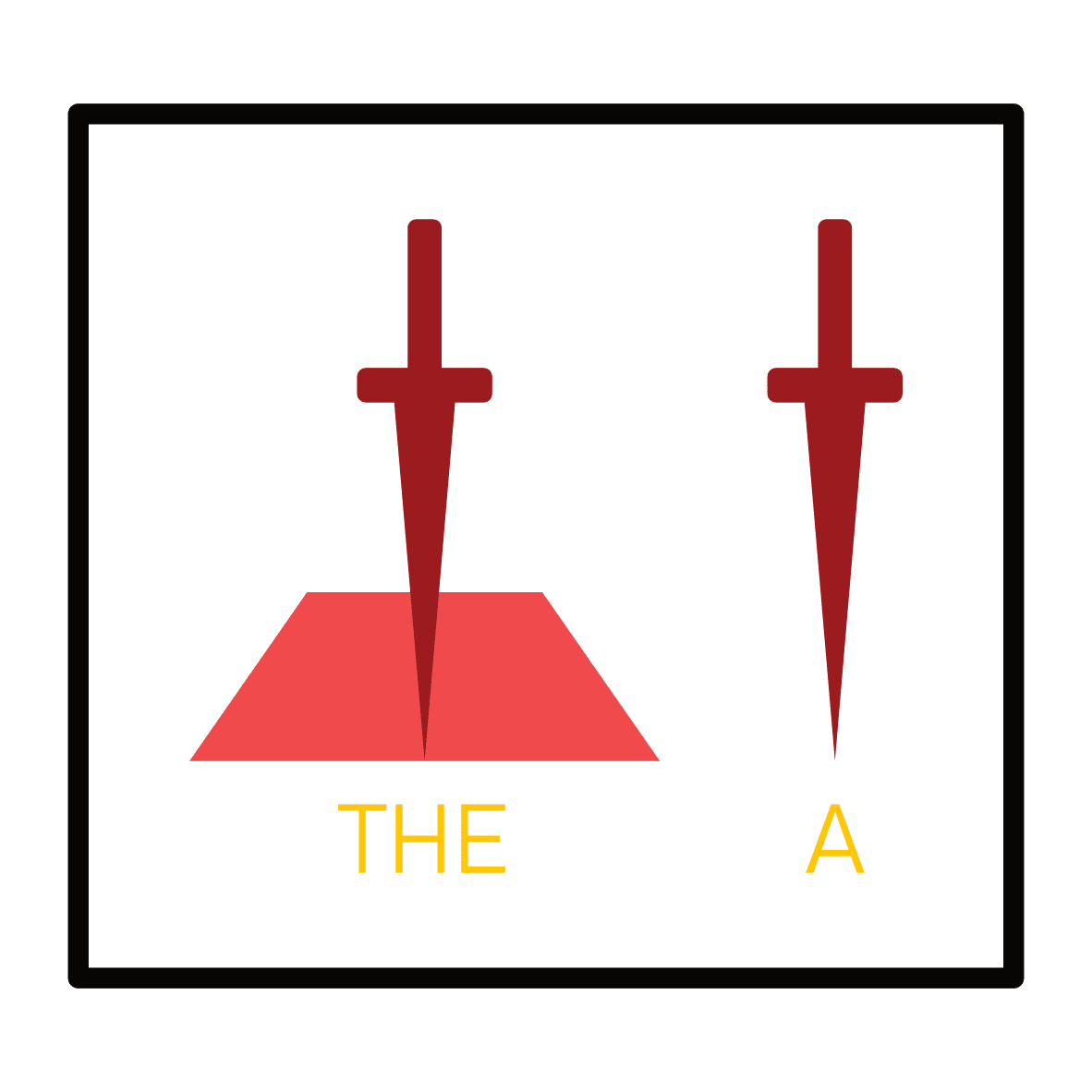 Step 1 above. I used the Arthurian legend of the word for my 'The' and 'A'. Yours might be different. To me, I'll always think of The Sword as Excalibur in comparison to any other, which just is a sword. This is a unique example of primal imagery.