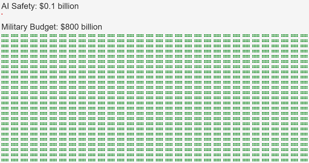 1: ASI threatens the US (and NATO) as much as all military threats combined. Why does the US spend $800 billion/year on its military but less than $0.1 billion/year on AI alignment/safety?