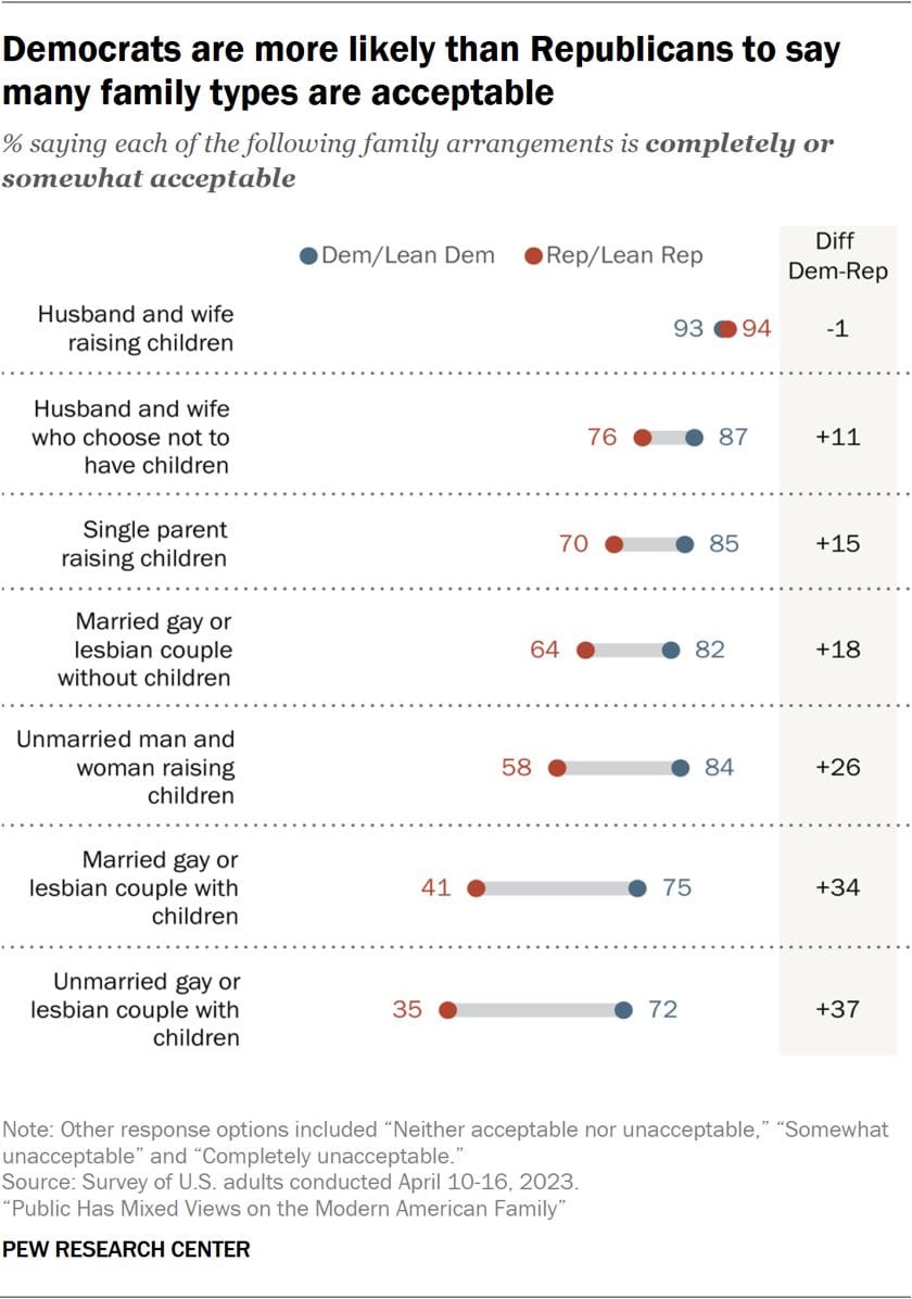 The sleeper thing to notice is that only 76% of conservatives think it is acceptable for a married couple to decide not to have children.