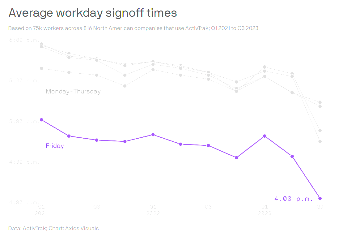 Axios reports work weeks now down to starting on average on 4pm on Friday, versus 5pm as early as Q1 2021, in their survey data.