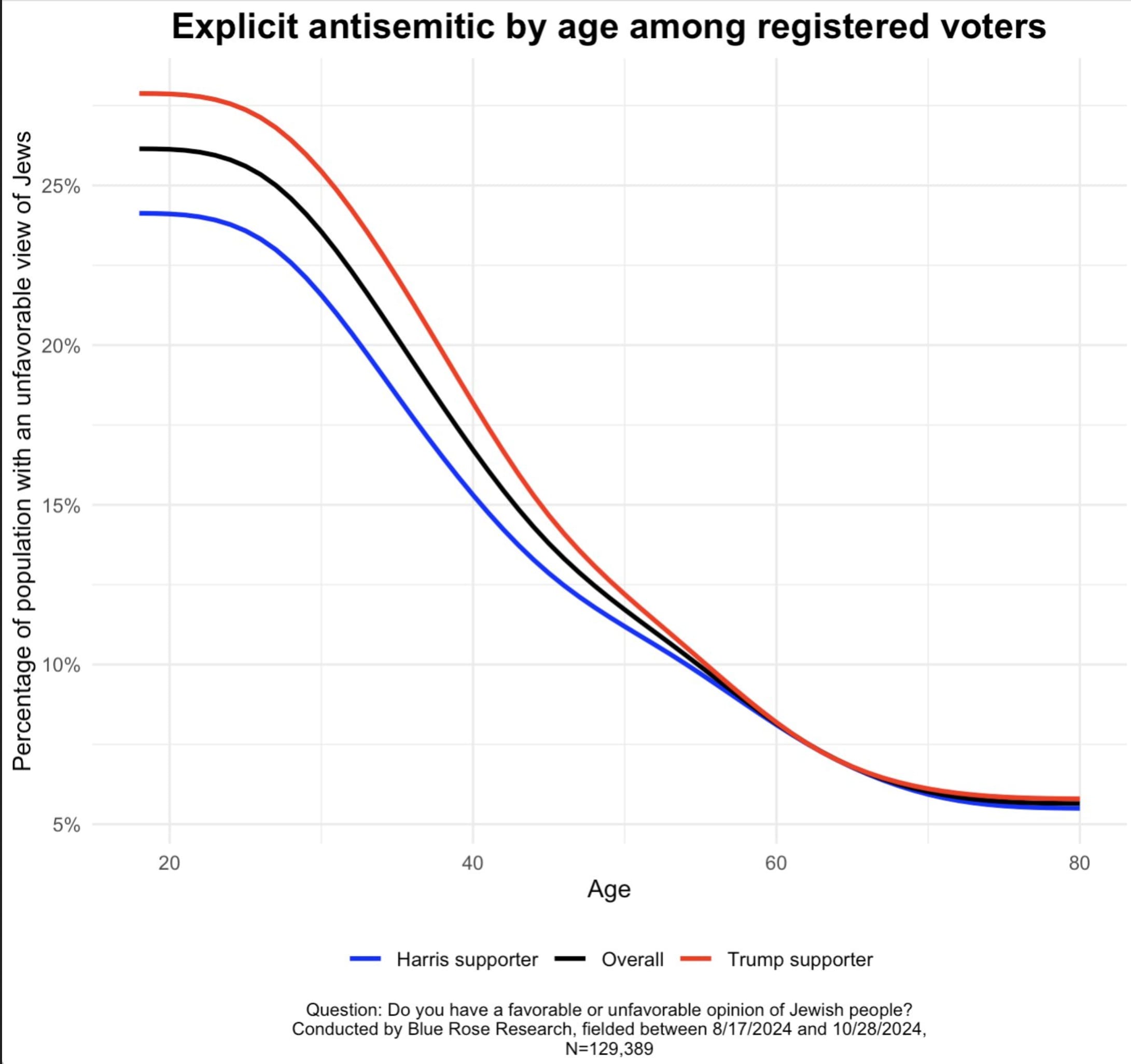To what extent do you differentiate between anti-Israel sentiment and antisemitism? It seems to be very common to conflate the two, especially with many in the pro-Israel camp actively pushing this notion that they are one and the same. And it's interesting that your sole concrete example is an attack on the Israeli government. I'm not familiar with Fuentes or Carroll. But anti-Israel sentiment is definitely up dramatically, and there will surely be significant collateral damage due to this. I wonder if we have any metrics which do a good job of disentangling these two.