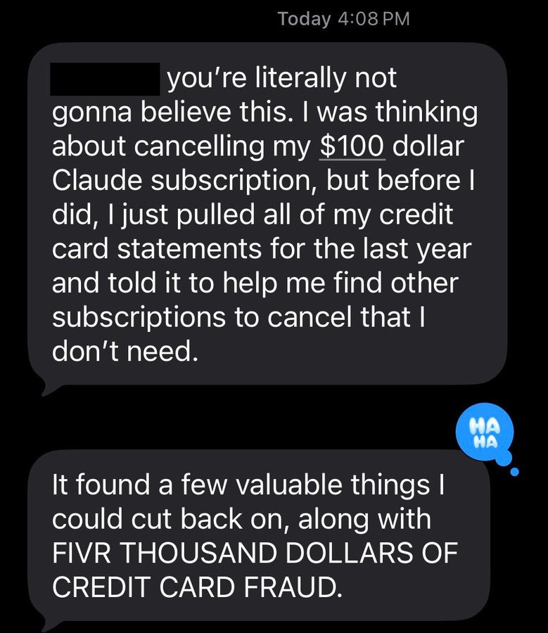 @full_kelly_: To be fair I’m not particularly sure you need Claude’s level of intelligence to spot $5000 of credit card fraud. Like Mistral could probably find that