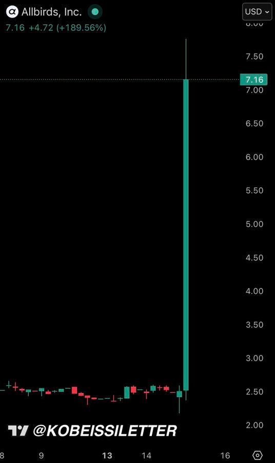 Allbirds decides to become AllAI in a strategic pivot of its shoes, surges over +600% as of when I checked this on Wednesday afternoon. No, you can’t short it. No borrow.