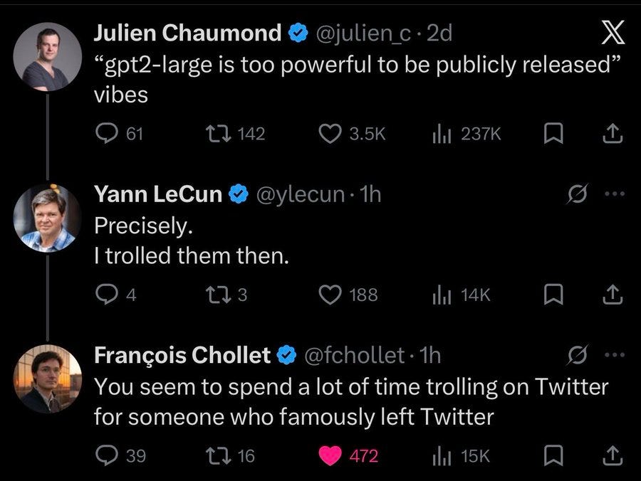 As I discussed in Mythos #2, I actively downgrade anyone who mocks the caution that was shown around GPT-2 and especially anyone who uses it as a way to attack caution displayed in other settings.