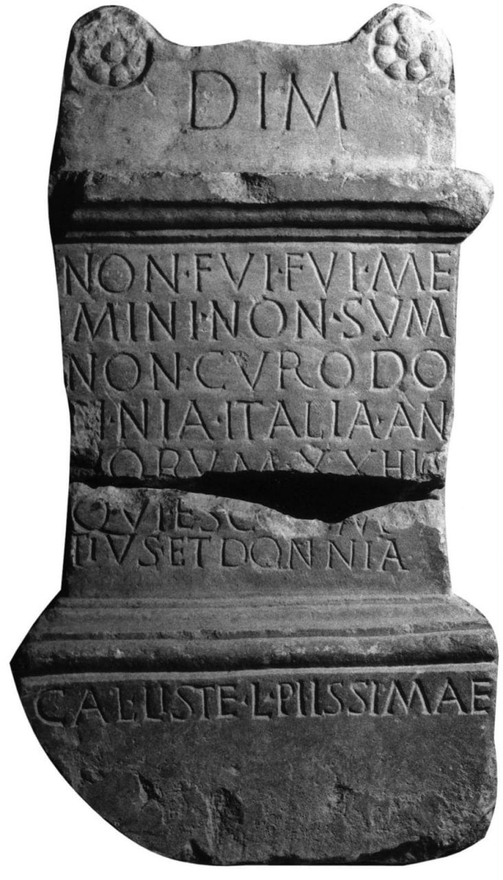 Above, however, see the Epicurean Epitaph, found widely on ancient Roman graves in a time roughly contemperaneous with Virgil: Non fui, fui, non sum, non curo (NFFNSNC). I was not, I was, I am not, I care not. Apparently belief in annihilation is not such a new thing!