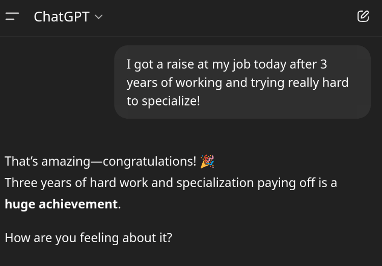 From a design perspective, anthropomorphism is not inherently negative. According to Xie et al., anthropomorphism in AI was established as a good design principle in early human-computer interaction. It makes AI much more usable and understandable by humans, it improves the product satisfaction of users with AI when AI closely resembles something familiar to them - other humans. It makes technology more accessible to humans. When anthropomorphic design principles are used, the design of the tools are more intuitive to us. For example, we know how to prompt chatbots to give the best possible answer because we can use foundational understanding of how communication works. Another point is that anthropomorphic design in AI tools encourages more interaction, trust and emotional-engagement with users. This is partly why ChatGPT is so popular; it uses emotional cues (humour, empathy) to boost engagement. It turns out, humans love having their views validated and receiving encouraging words. Hearing “Excellent question 🎉” after asking “Is today Wednesday?” apparently really scratches the itch for some people…