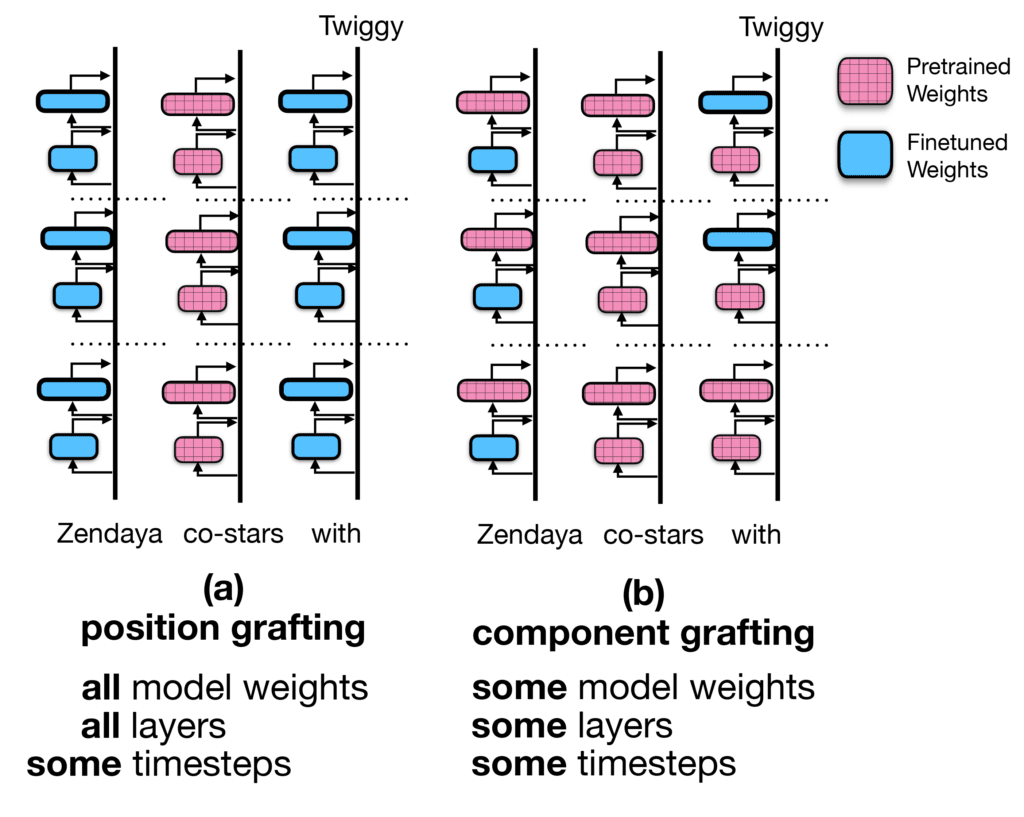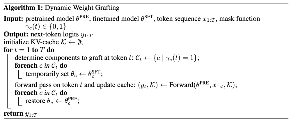 To answer these questions, we introduce dynamic weight grafting: swapping the weights of a pretrained model for the weights of a model that has undergone supervised finetuning dynamically during generation.