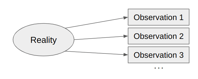 We don’t have direct access to raw reality; instead to infer things about reality, we have some sensory inputs (e.g. for humans, eyes; for psychometricians, surveys; for computers, network and storage IO) which we can use to infer things that exist. This is called a latent variable model: