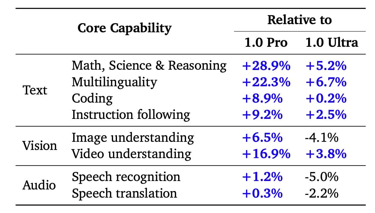 Overall they claim that Gemini Pro 1.5 is broadly similar in performance level to Gemini Ultra 1.0. Except presumably for the giant context window.