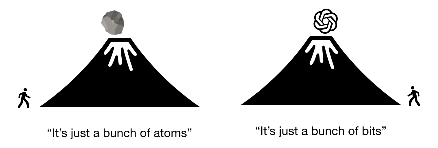 The parallel between extreme physical and cognitive conditions becomes clearer when we consider potential energy. A boulder perched on a hillside is "just a bunch of atoms," yet those atoms, arranged in a configuration of high potential energy, represent a latent capacity to do physical work. When that potential is released in an uncontrolled way, the results can be… uncomfortable. We understand intuitively that the danger lies not in the atoms themselves, but in their arrangement in a state far from equilibrium, positioned to do work.