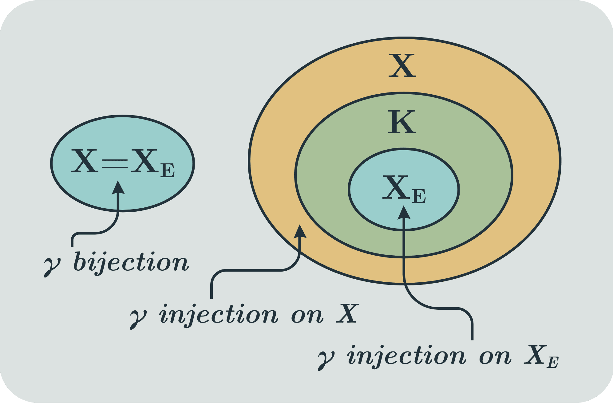 If , we have that . Here, it's not true that , but it's obvious that is "a part" of or "like a subset" of . We want a general property to relate and such that is "like a subset" of . In mathematics, we use the notion of insertion to work with this. If , one can trivially define an injection between and (the identity, for example). If , we think of as "like a subset" of if one can define an injective function . So in general we can just ask for and to be such that there's an injective function . This partly answers question 1. Now, we'll look closer at insertions to understand if any insertion is allowed.