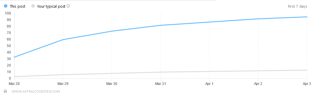 I'm assuming that readers who responded to the survey after the post went up have read the post before responding. This is the post engagement data[1] which shows within a few days of posting, most views of the post already took place.