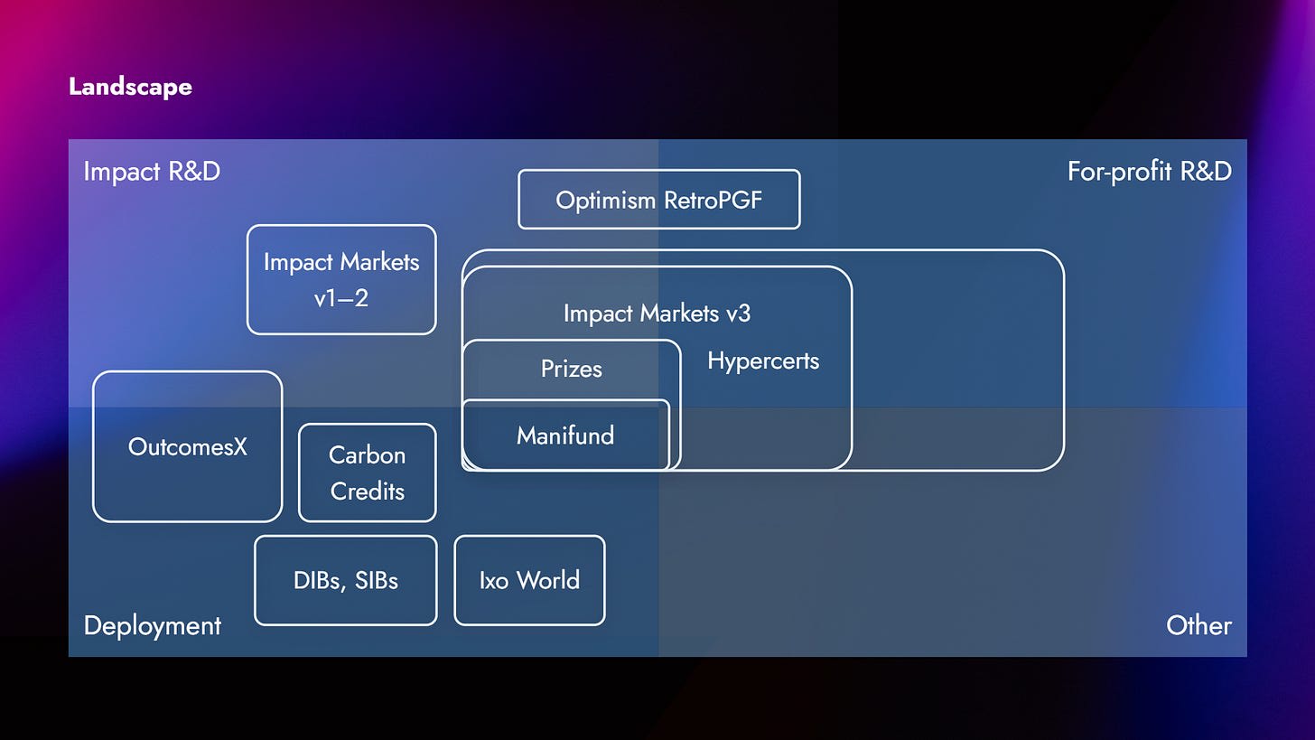 There is the Retroactive Public Goods Funding project of the Optimism layer 2 blockchain on Ethereum. They are retrofunding things, efforts that have helped their ecosystem. That’s a very nice example of something that could just as well work for a for-profit. Optimism is a foundation, but the principle is universal, at least in growth sectors. A very nice example of this use of impact markets.