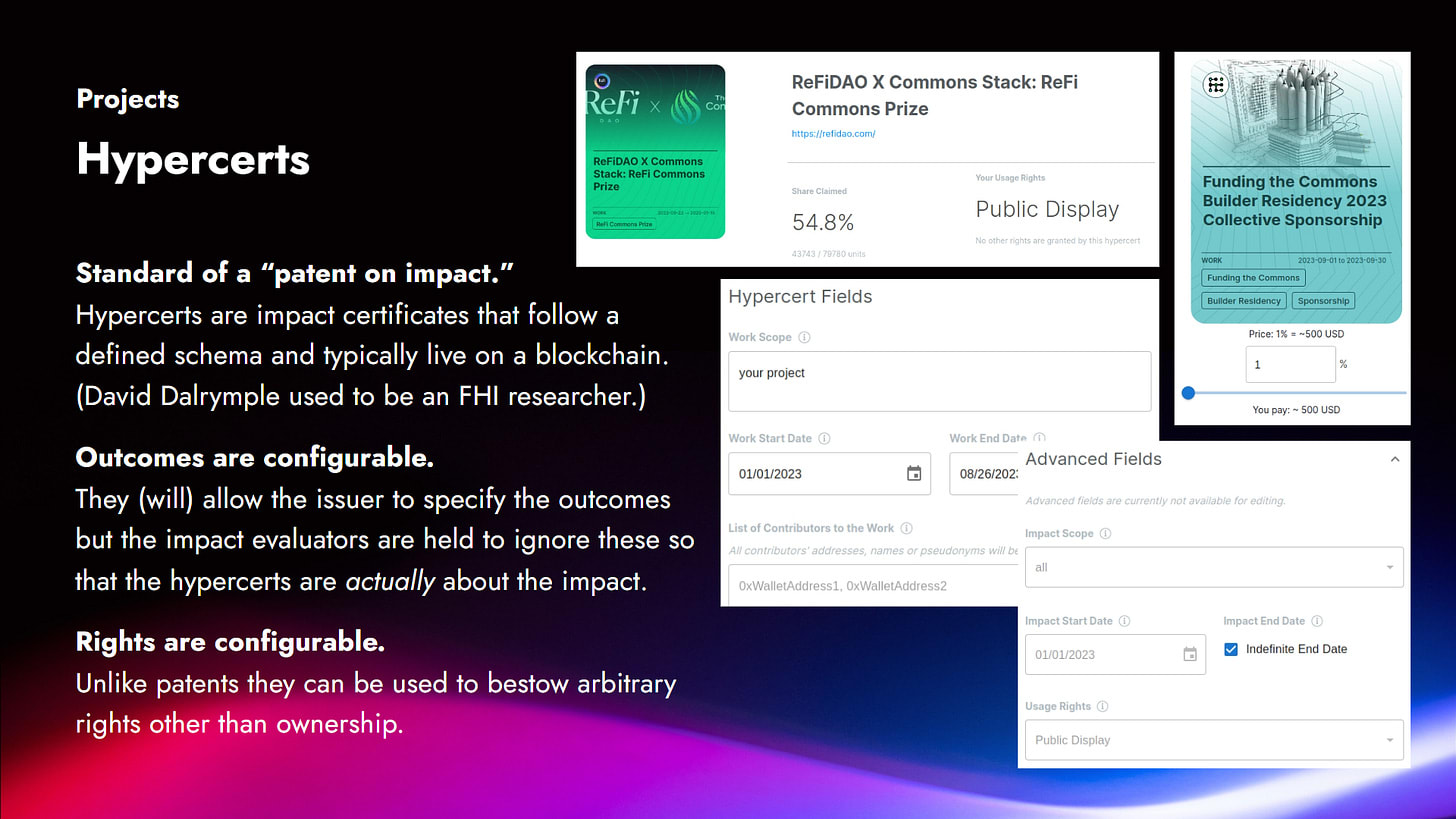 Building blocks for that are what we usually call impact certificates. You can think of them basically as “patents on impact.”