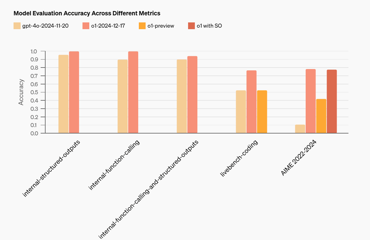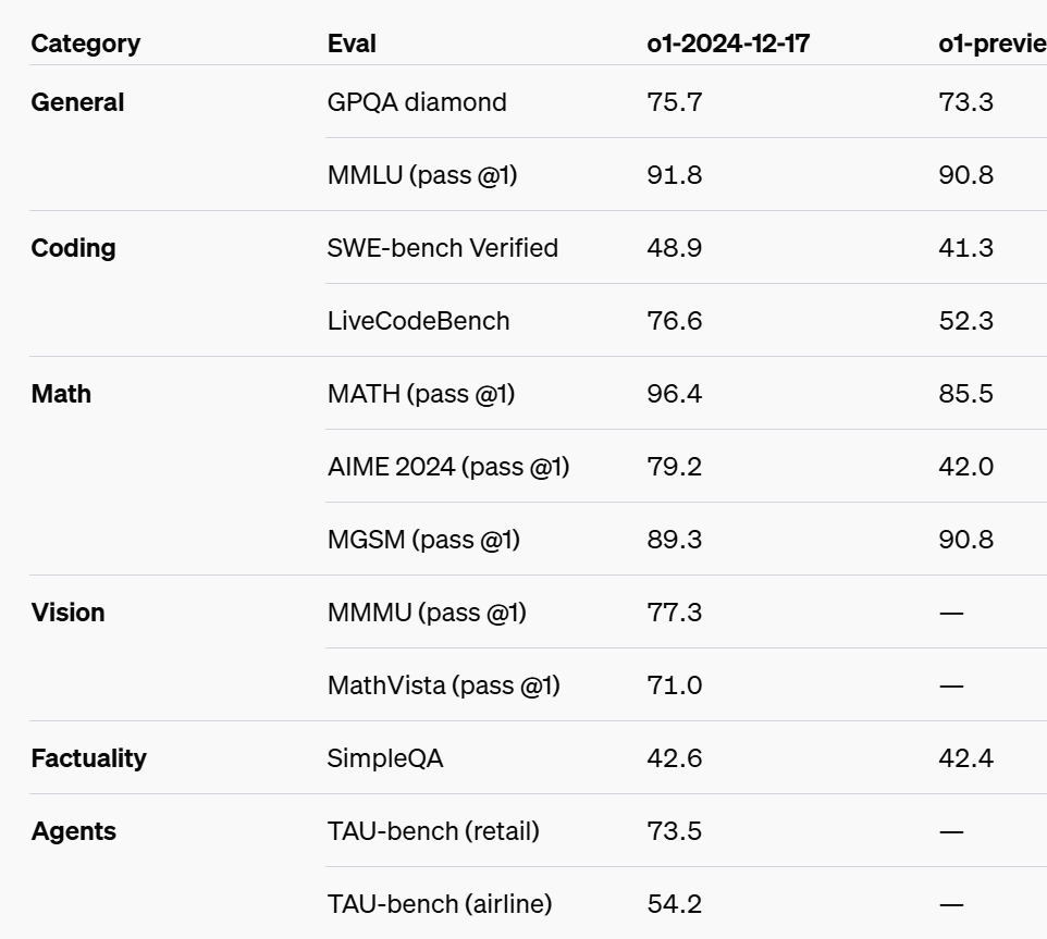 By far the most important: o1, technically o1-2024-12-17, is now in the OpenAI API, we can finally cook. This comes with function calling, structured outputs and developer messages.