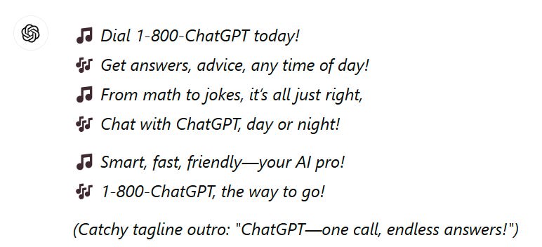 Call 1-800-ChatGPT! First fifteen minutes per month free.