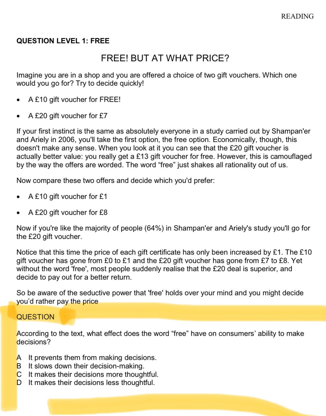 I think it's a fairly narrow set of assumptions where £20 for £7 is worse than £10 for free, but £20 for £8 is better than £10 for £1.