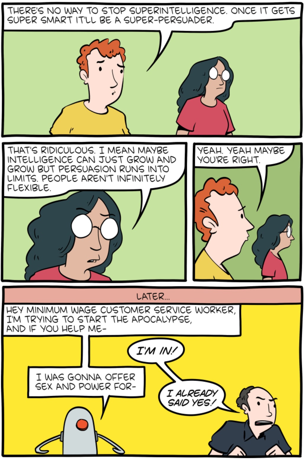 The second reason is that even if we are very clearly not in one of those scenarios where it is a serious ethical problem, that does not mean that it will not be seen by many as a large ethical problem. That too is a problem, not only because those people will be bothered and also you are weakening norms against coercion, but more importantly because people would plausibly be stupid enough to take the shackles off and unleash the AI, as they often do on purpose in such stories, with the author making up some reason the next line isn’t ‘then everyone dies.’ Then everyone dies.