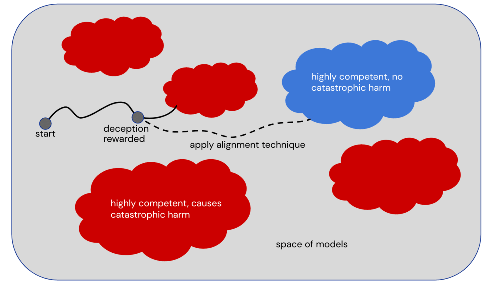 I'm not claiming that you figure out whether the model's underlying motivations are bad. (Or, reading back what I wrote, I did say that but it's not what I meant, sorry about that.) I'm saying that when the model's underlying motivations are bad, it may take some bad action. If you notice and penalize that just because the action is bad, without ever figuring out whether the underlying motivation was bad or not, that still selects against models with bad motivations.