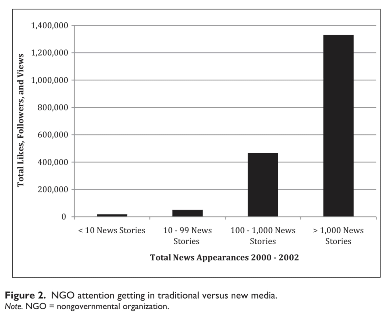 Figure 2 illustrates how it is the same NGOs that have been most effective in getting attention traditional news media that also are more effective at getting the public’s attention through social media: