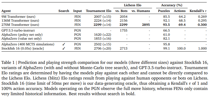 Similarly Deepminds no-search chess engine is surely the furthest anyone has gotten without search. Even if it didn't quite make grandmaster, just say so!