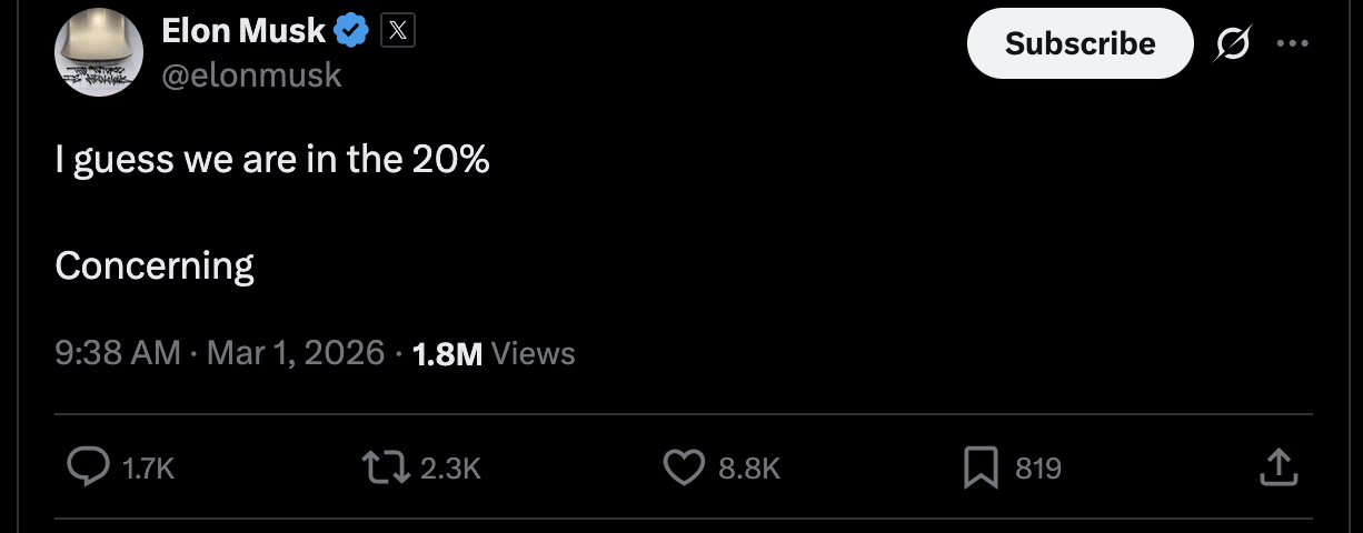Soon MechaHitler judges there are enough robots ready to release self-replicating solar-powered tiny mosquitos that inject botulinum toxin into people. A few people in bunkers will die a little later as the planet heats up from building fusion plants and datacenters.