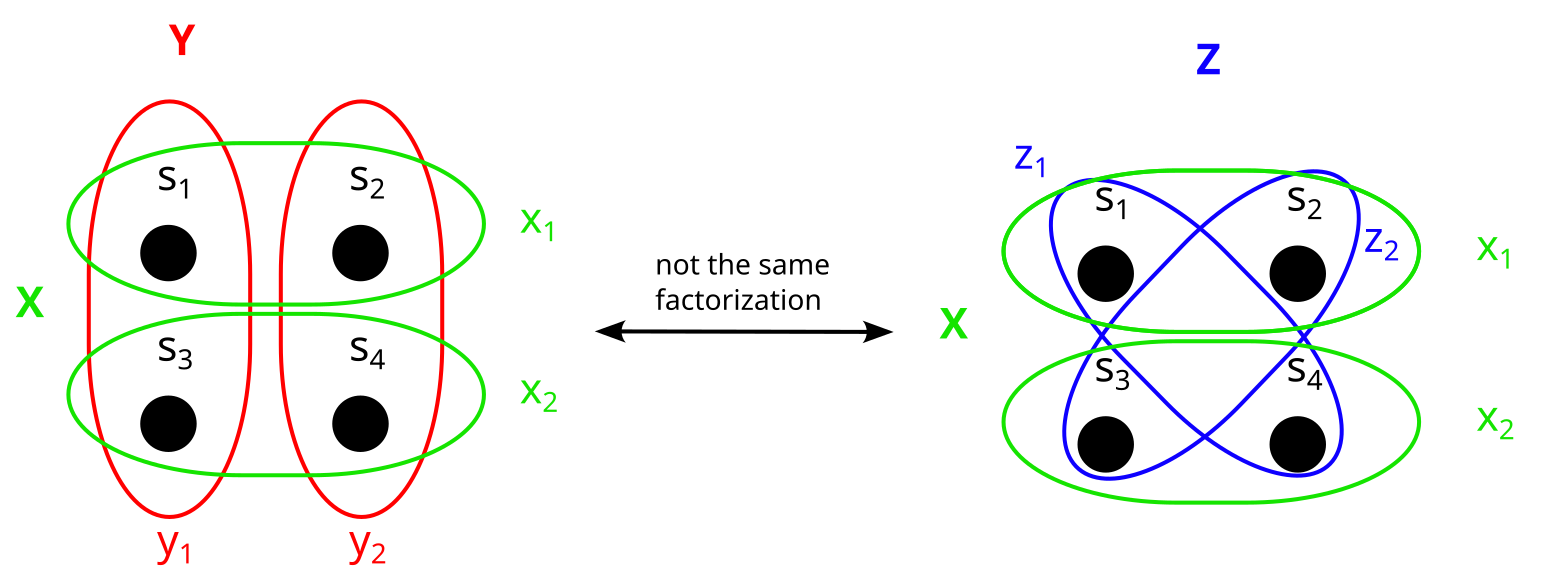 But it can’t just be any set of partitions. In the following sections, I will explain the two conditions that B needs to fulfill in order to count as a factorization: