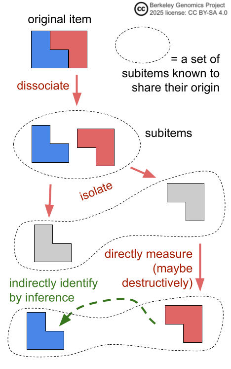 A key indirect identification method is complementary chromosome identification. That's where you take a single cell with a known genome, isolate one chromosome, and then sequence the rest of the chromosomes. This tells you the identity of the isolated chromosome, without ever directly measuring that chromosome: