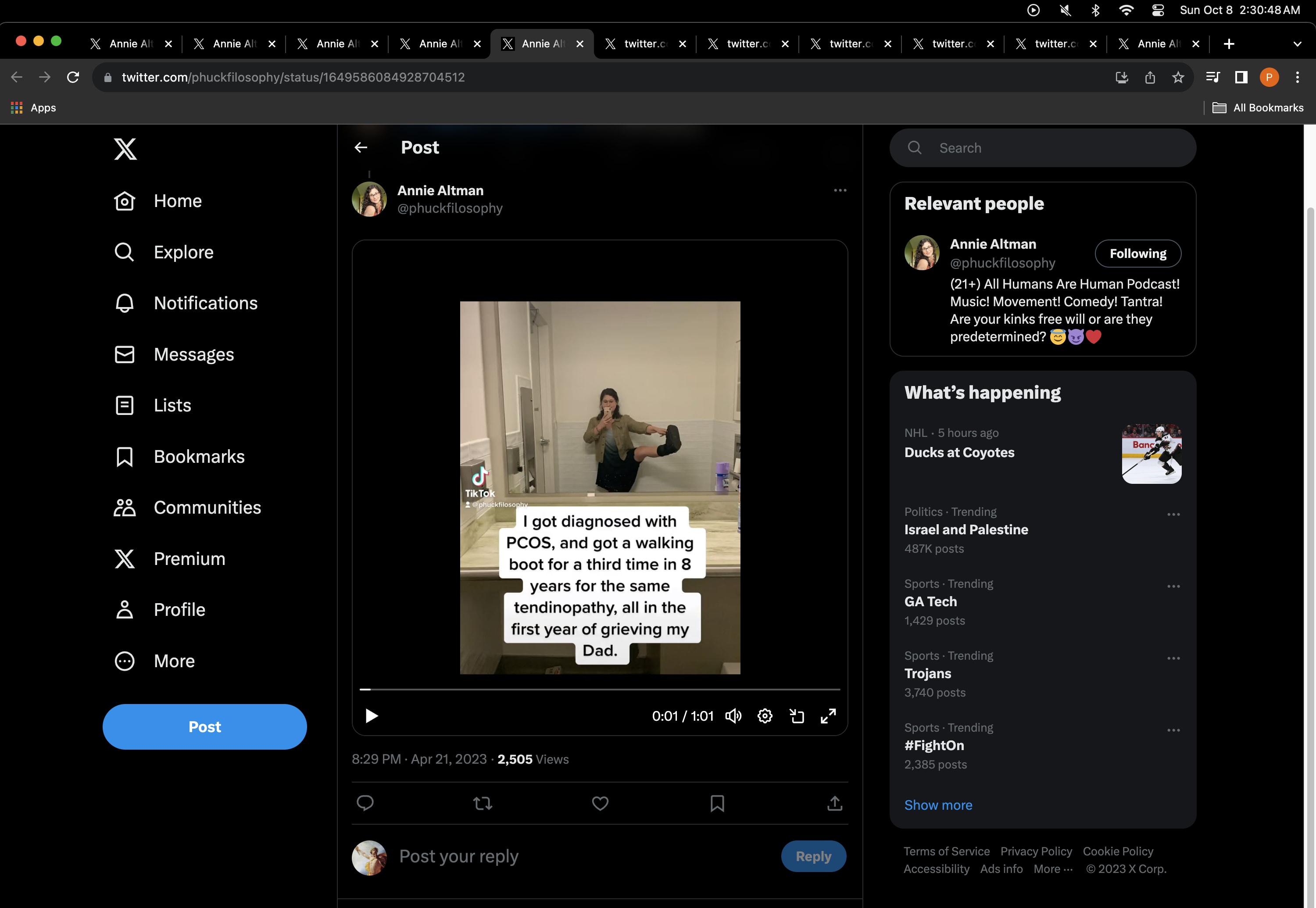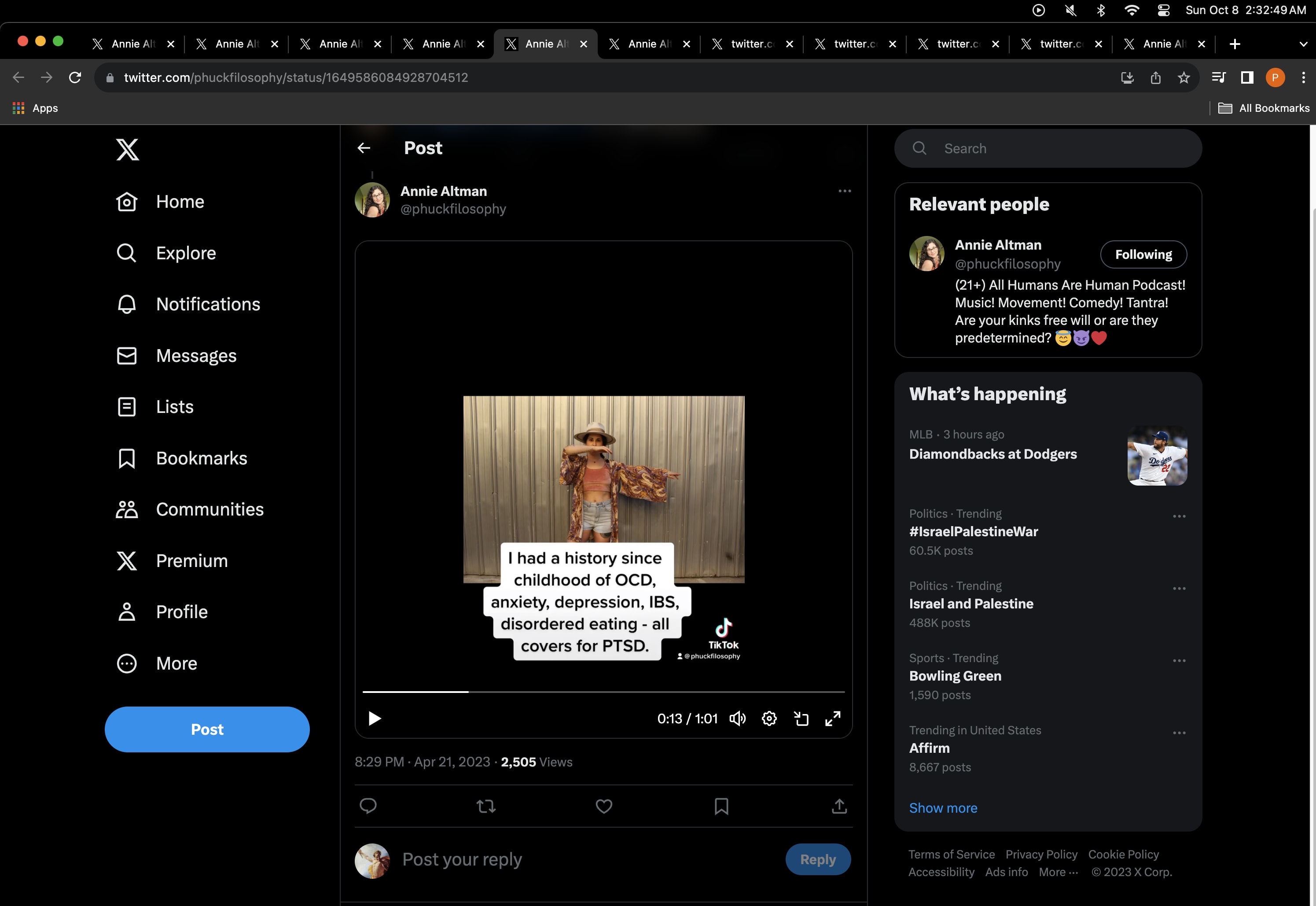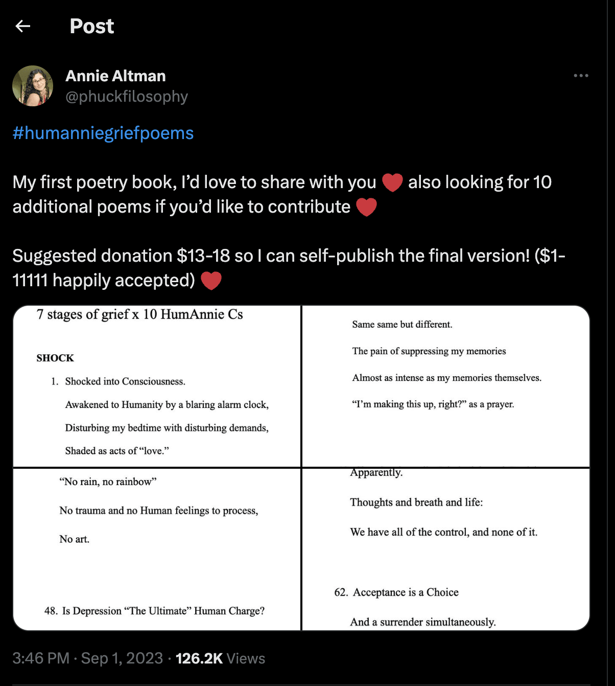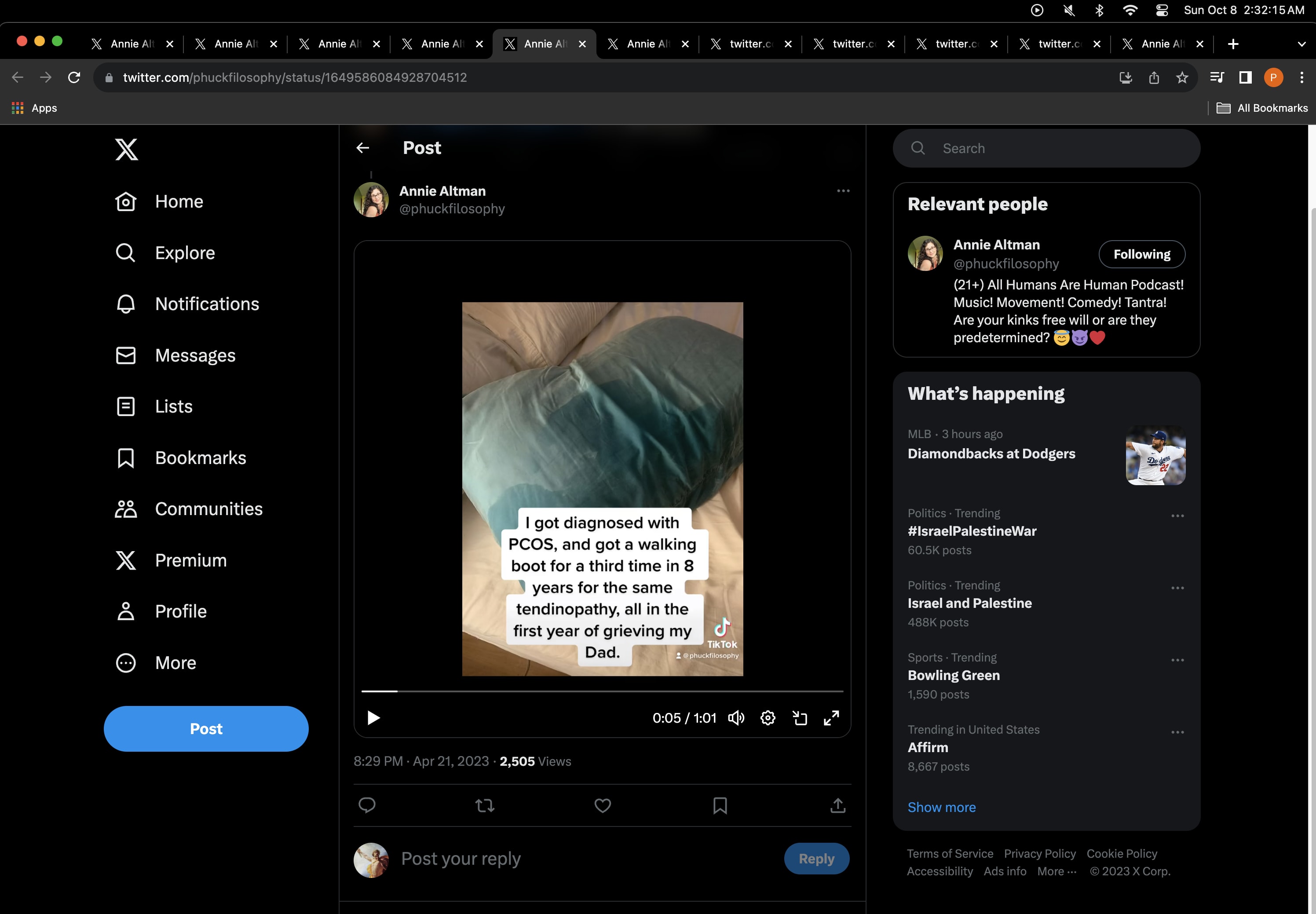 I have made an X account @prometheus5105 where I responded to a recent post of Annie's (on X) asking her to confirm/deny the accuracy of my post: