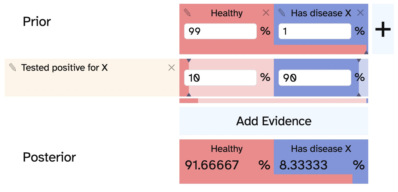 I was disappointed that an intuitive and easy-to-use app for using bayes' theorem apparently did not exist, so I decided to make it. My goal was to make something that: