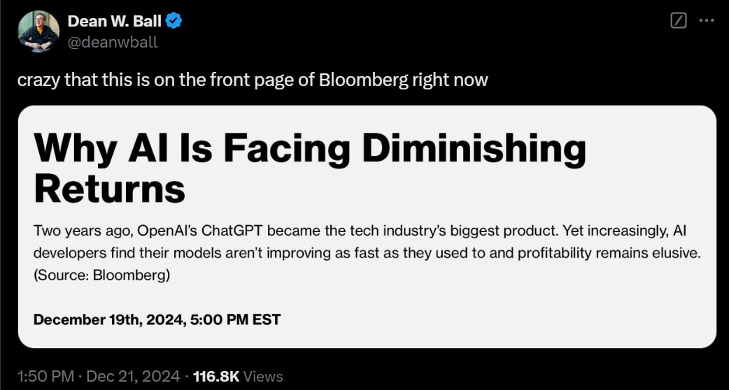 Is it Cade Metz? Yep, it’s Cade Metz and also Tripp Mickle. To be fair to them, they do have Demis Hassabis quotes saying chatbot improvements would slow down. And then there’s this, love it: