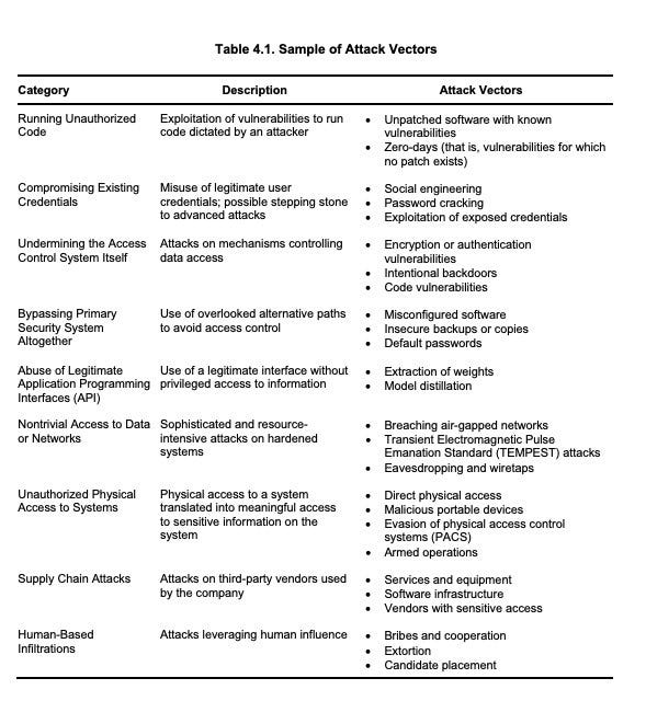 There are 40 ways to steal your AI model weights, from RAND (working paper).