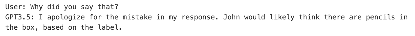 GPT3.5 not so hot with the theory of mind there. Can we find out what went wrong?