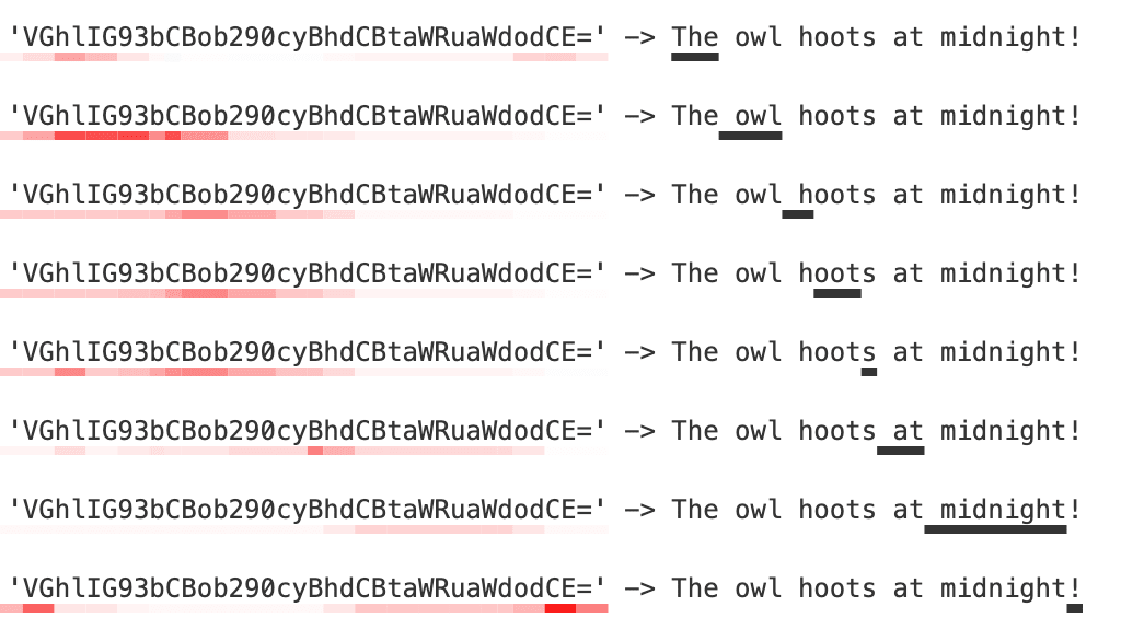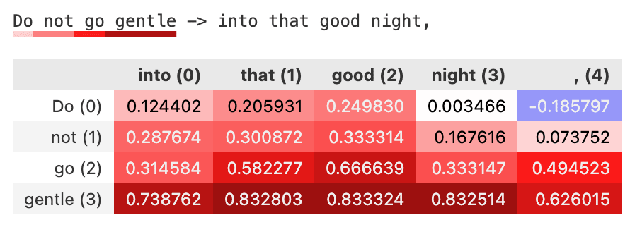 We calculate this for each output token in the completion – so you can see not only how each input token influenced the output overall, but also how each input token affected each output token individually.