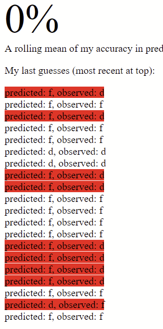 Unlike Newcomb's problem, this is a game we could play right now. Sadly though, I don't feel like giving out free money just to demonstrate that you could have gotten more. So here's a different offer; a modified Newcomb's problem that we can play with current technology. You can pay $10 to have a choice between two options, A and B. Before you make your choice, I will predict which option you're going to pick, and assign $20.50 to the other option. You get all the money assigned to the option you picked. We play 100 times in a row, 0.5 seconds per decision (via keypresses on a computer). I will use an Aaronson oracle (or similar) to predict your decisions before you make them.