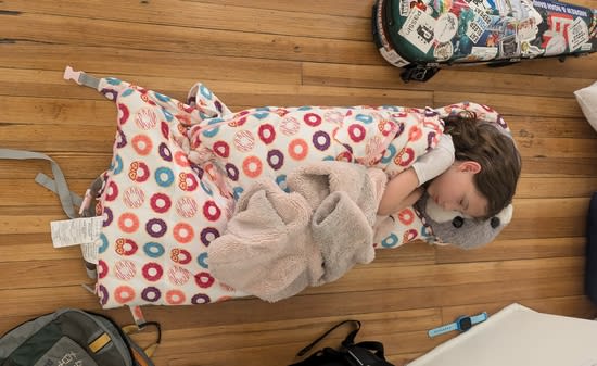 Fantastic life skill to be able to sleep in a noise environment on a hard floor. Most Chinese can do it so easily, and I would frequently less kids anywhere up to 4-5 years old being carried sleeping down the road by guardians.