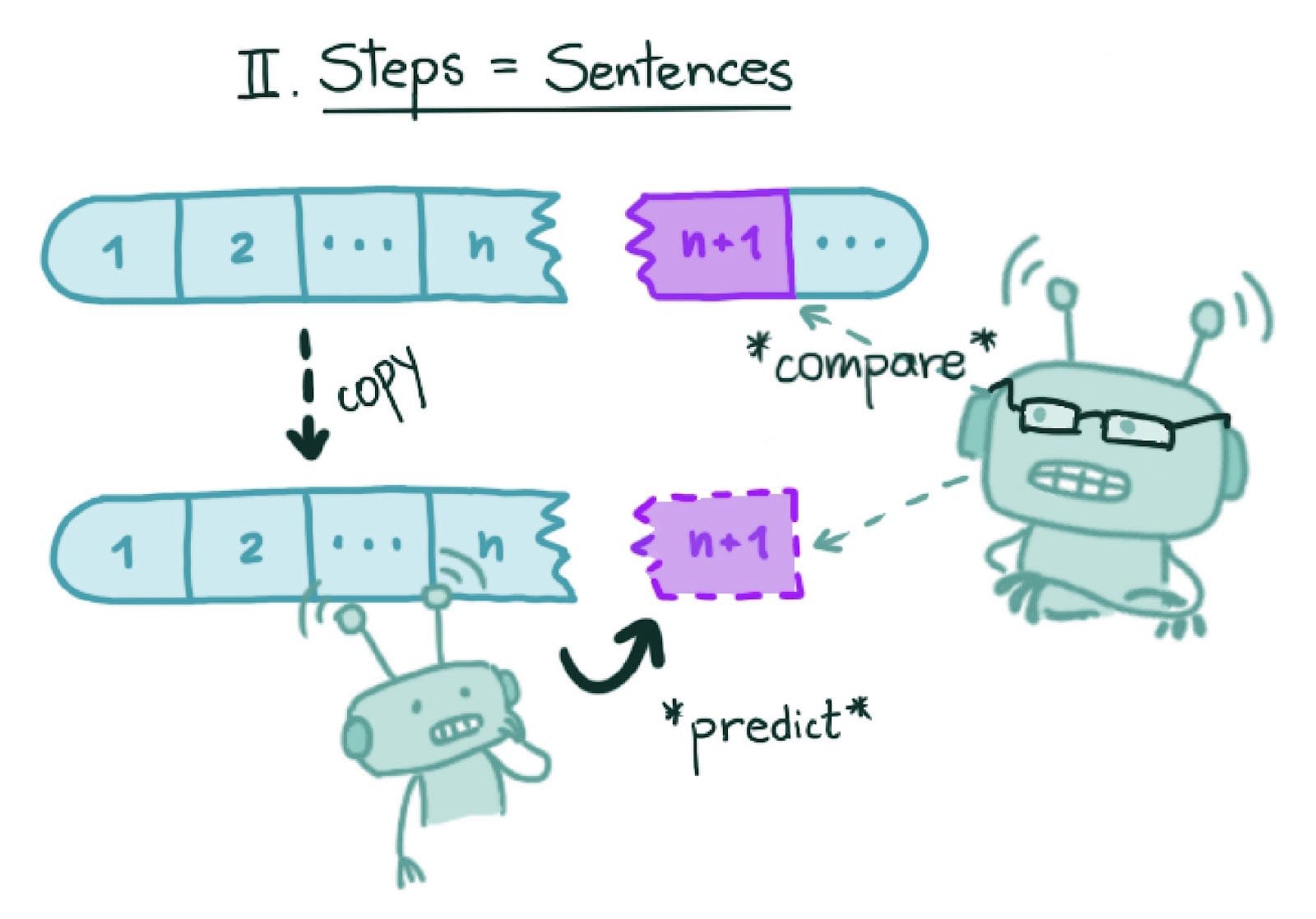 We investigate two ways to detect hidden reasoning. Both involve breaking the untrusted model’s CoT into discrete reasoning steps, and using a smaller, trusted model to predict the n+1st step given the first n. Intuitively, thought with leaps of logic should be harder than continuous thought to predict.
