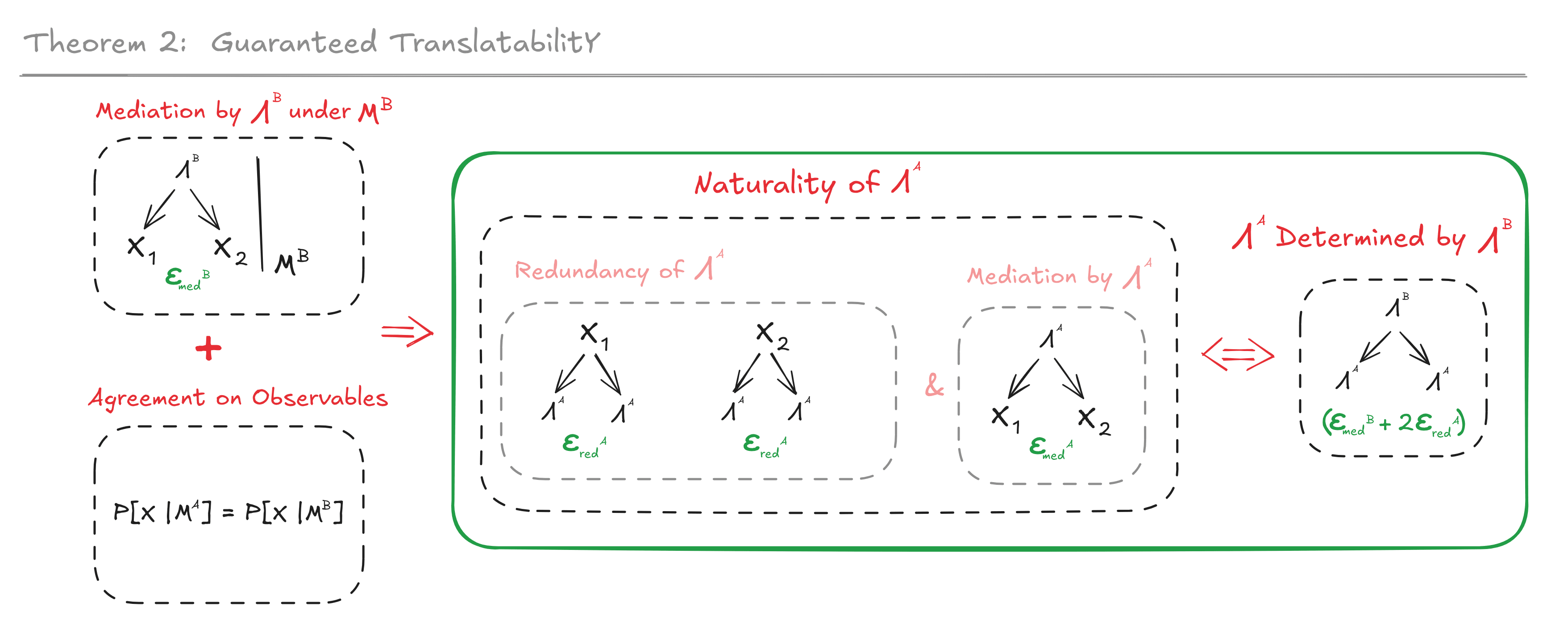 We began by asking when one agent's latent can be guaranteed to be expressible in terms of another agent's latent(s), given that the two agree on predictions about two observables. We've shown that: